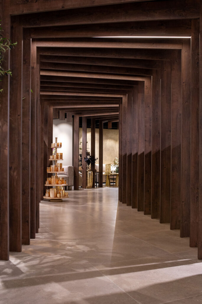De BS021 railspots zorgen voor een heldere, natuurlijke verlichting die de kledingstukken prachtig tot hun recht laat komen. Daarnaast creëren de subtiele LED-strips, geïntegreerd in de houten constructie, een warme en uitnodigende sfeer. Ze leiden bezoekers op een natuurlijke manier door de verschillende zones van de winkel, van mode tot interieuraccessoires.